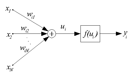 В качестве функции активации f(ui) выступает сигмоидальная функция (т.е. функция, график которой похож на букву S). На практике используются как униполярные, так и биполярные функции активации.