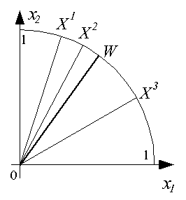 подбирается вектор входных весов W, представляющий собой "усреднение"