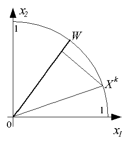 Поскольку входные векторы X1 и X2 нормализованы (т.е. |X1|2=|X2|2=1), то выходной сигнал инстара равен просто косинусу угла между векторами X1 и X2.