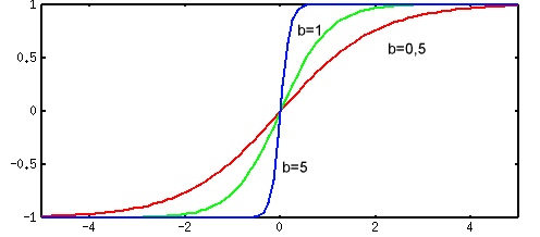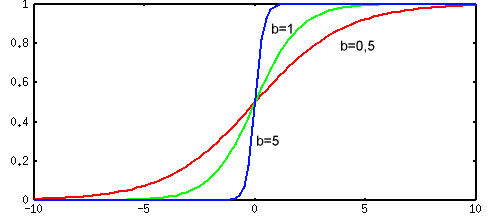 Коэффициент b определяет "крутизну" функций и выбирается пользователем (на практике b для упрощения назначают обычно равным 1).