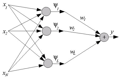 Задача обучения сети состоит в подборе таких значений L, Ci и wi, которые доставляют минимум целевой функции