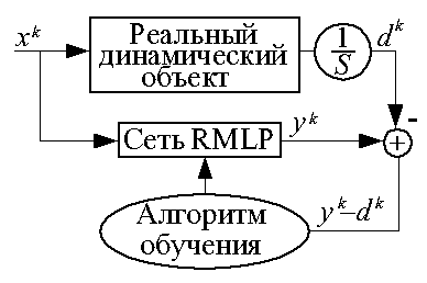 Сети RMLP широко используются для построения формальных математических моделей реальных динамических объектов, для чего используется следующая схема обучения.