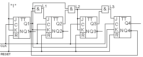 Рассматриваемый в примере счетчик на основе JK-триггеров и элементов 2И