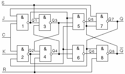 Структурное описание JK-триггера в базисе элементов 3И-НЕ выглядит